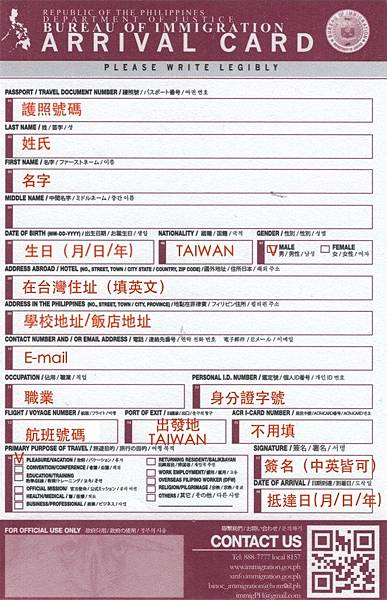 菲律賓入境卡已經全新改版囉~中文教學在此~請服用!!!